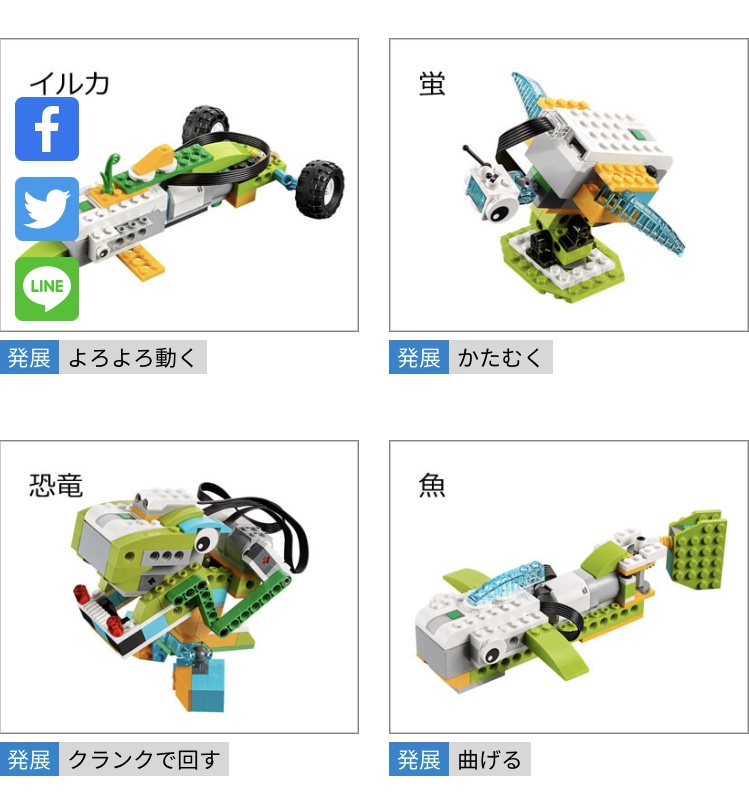 悩んだものの、WeDoに多い動物設計図が少なく、やや勉強寄りの課題が多いです。推奨年齢どおり小学校中学年なら自力で楽しめそうでした。