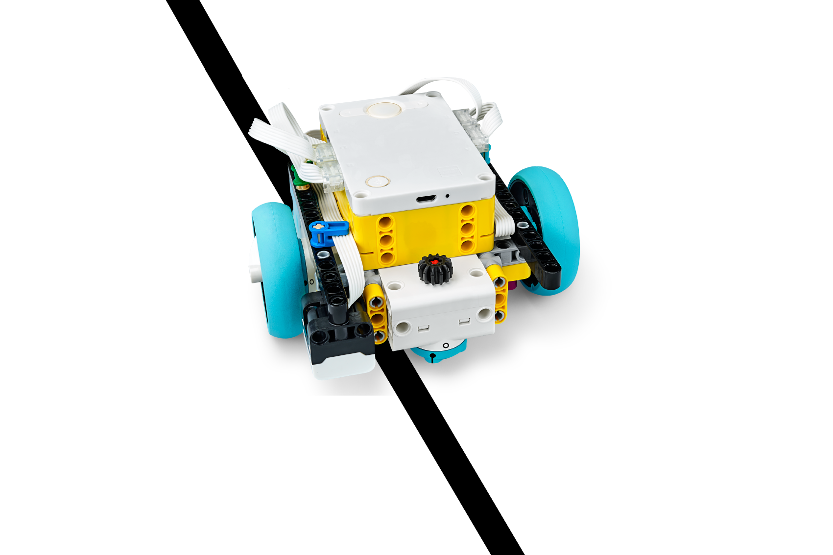 加速度センサーが付いています。SPIKEハブのジャイロ機能とどう違うかは私はわかりません。赤外線センサーでライントレーサーを作る事になりカラーセンサー付きのSPIKEと最も異なる点はそこだと思います。カラーラインによって動きを変える等の複雑なライントレーサーは難しく、ロボコン向きではないかもしれません。
